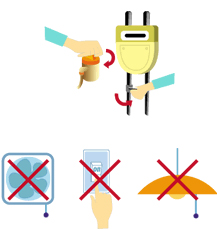 - 火気は絶対に使わず、電気のスイッチにも手を触れないようにしてください。